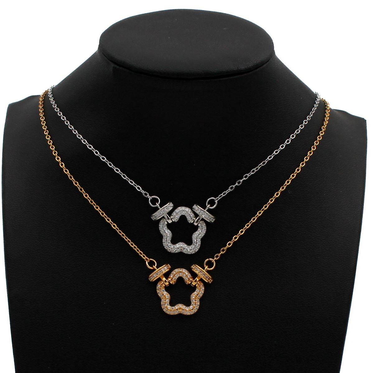 Ατσάλινο κολιέ "λουλούδι με λευκές πέτρες" μήκος 42εκ.+προέκταση 70350