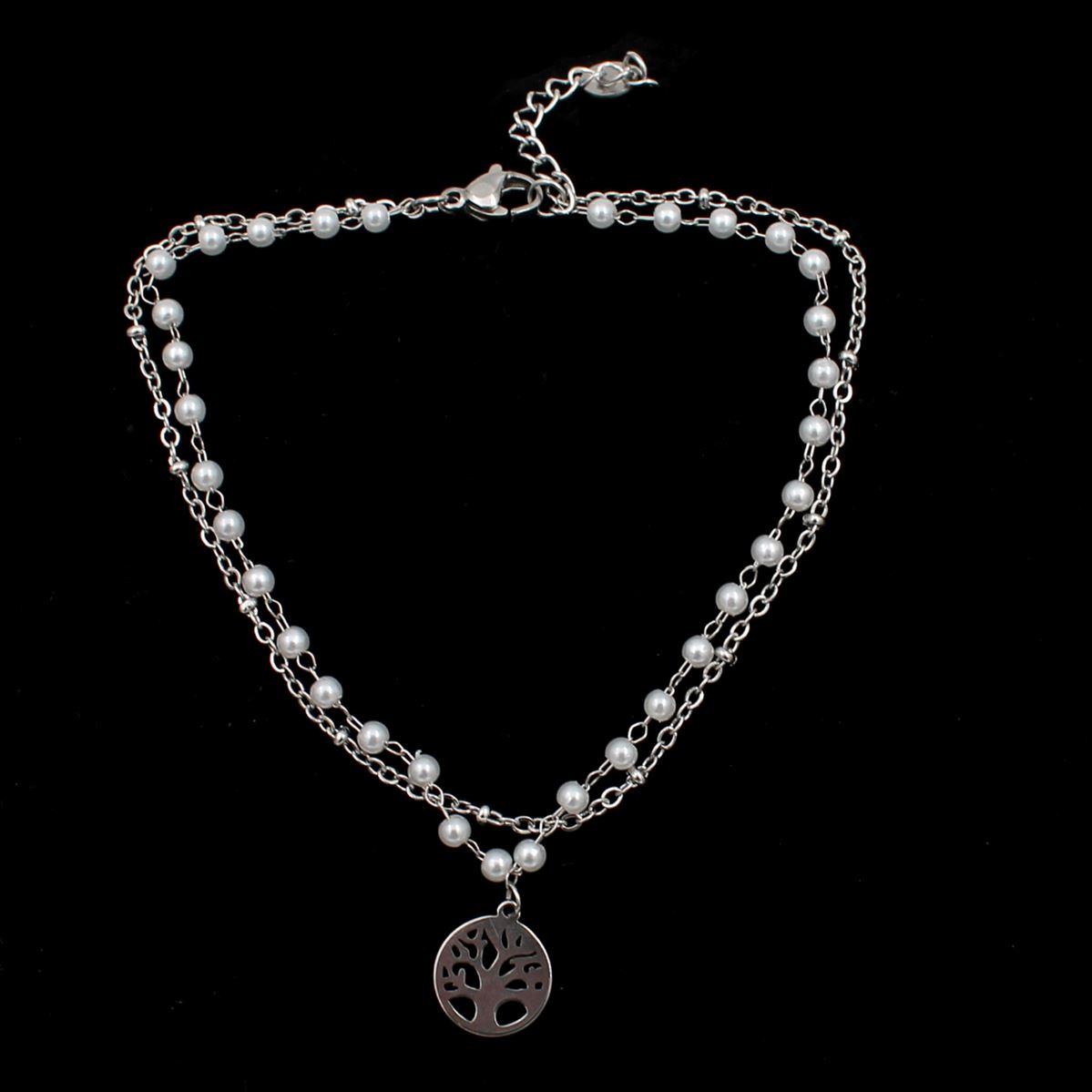 Ατσάλινη αλυσίδα ποδιού "πέρλα με δέντρο ζωής" μήκος 20εκ.+προέκταση 70766