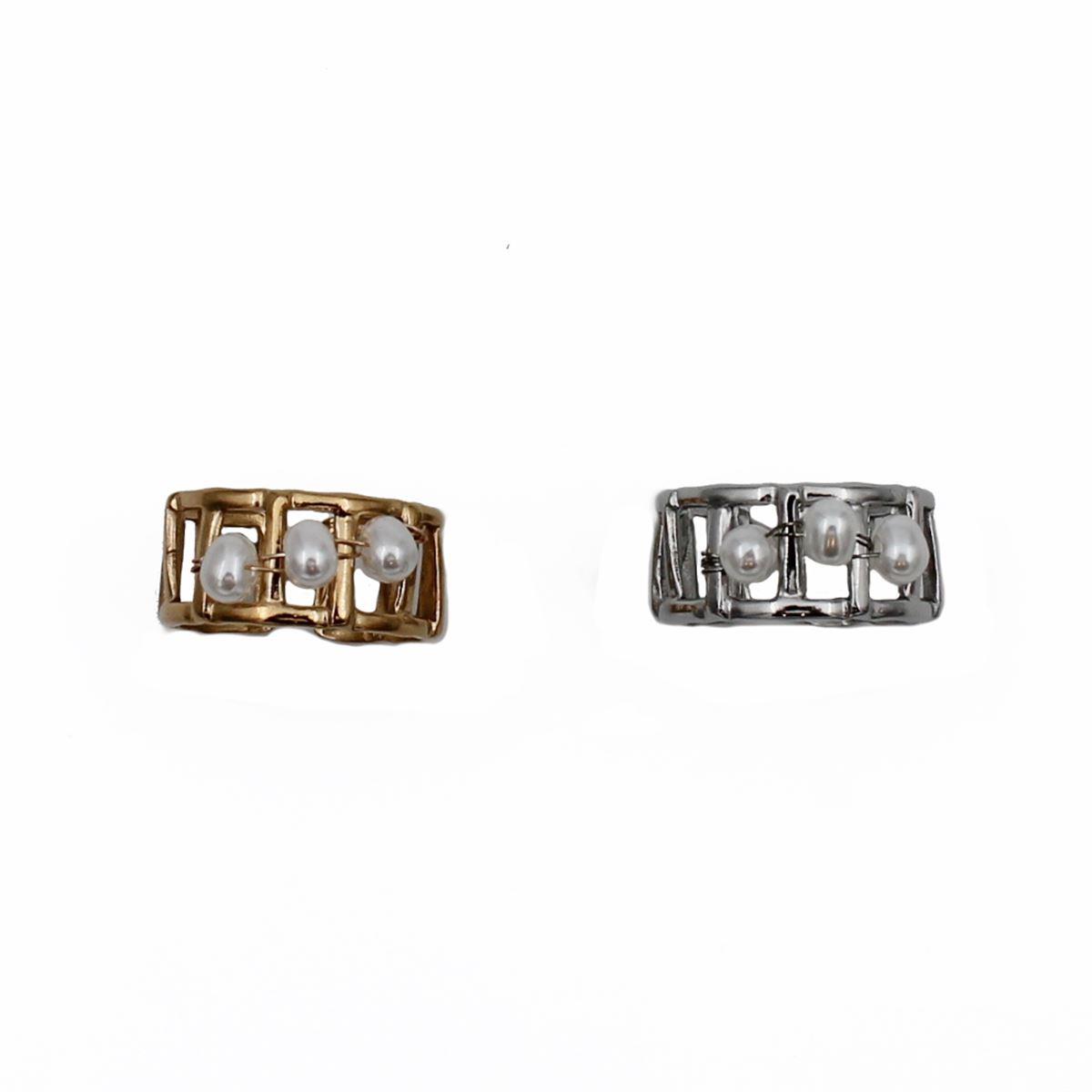 Ατσάλινο δαχτυλίδι "Τρεις πέρλες" πάχους 1εκ. one size 70013