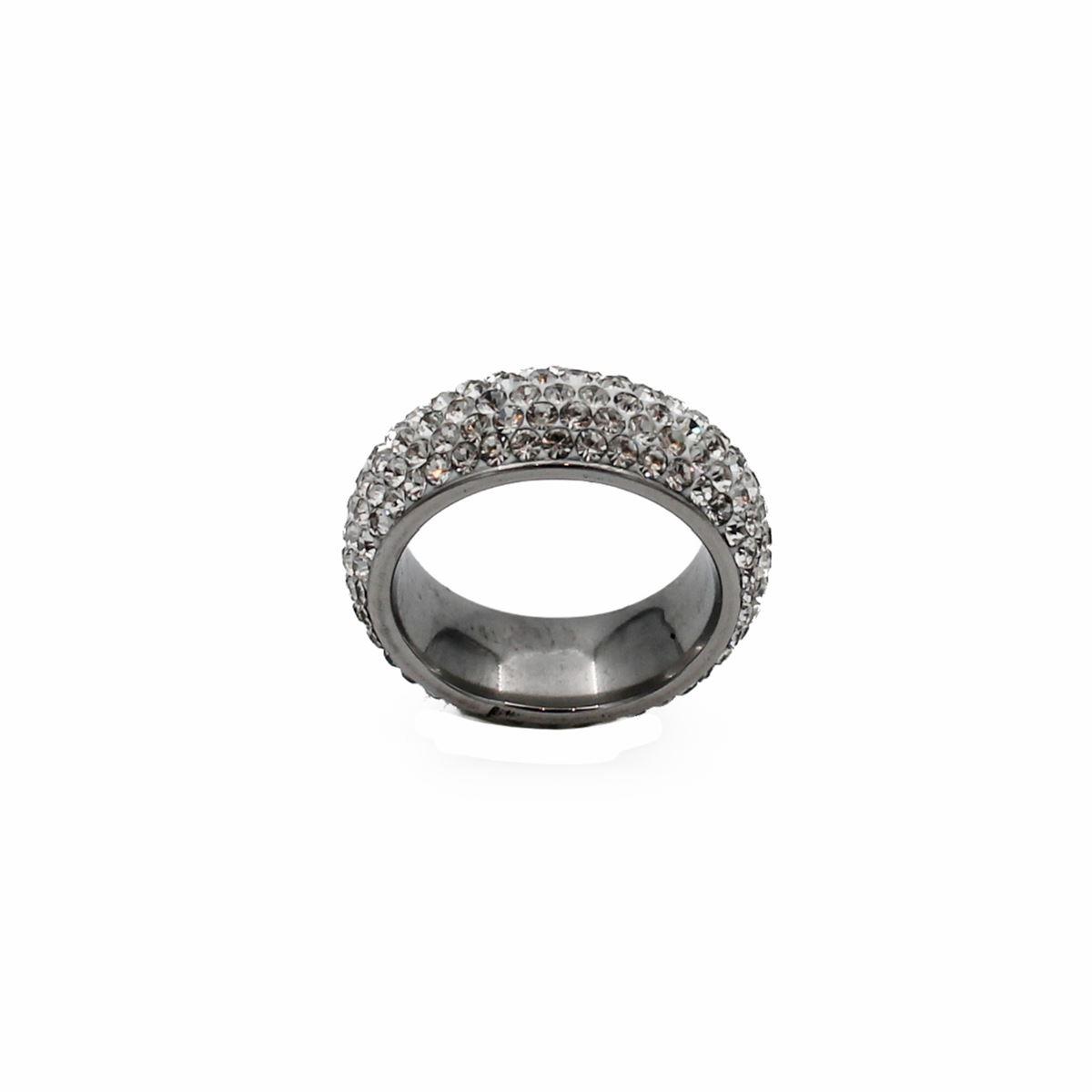 Ατσάλινο δαχτυλίδι "Βέρα σειρέ" με πέντε σειρές με λευκές πέτρες πάχους 1εκ. 70018