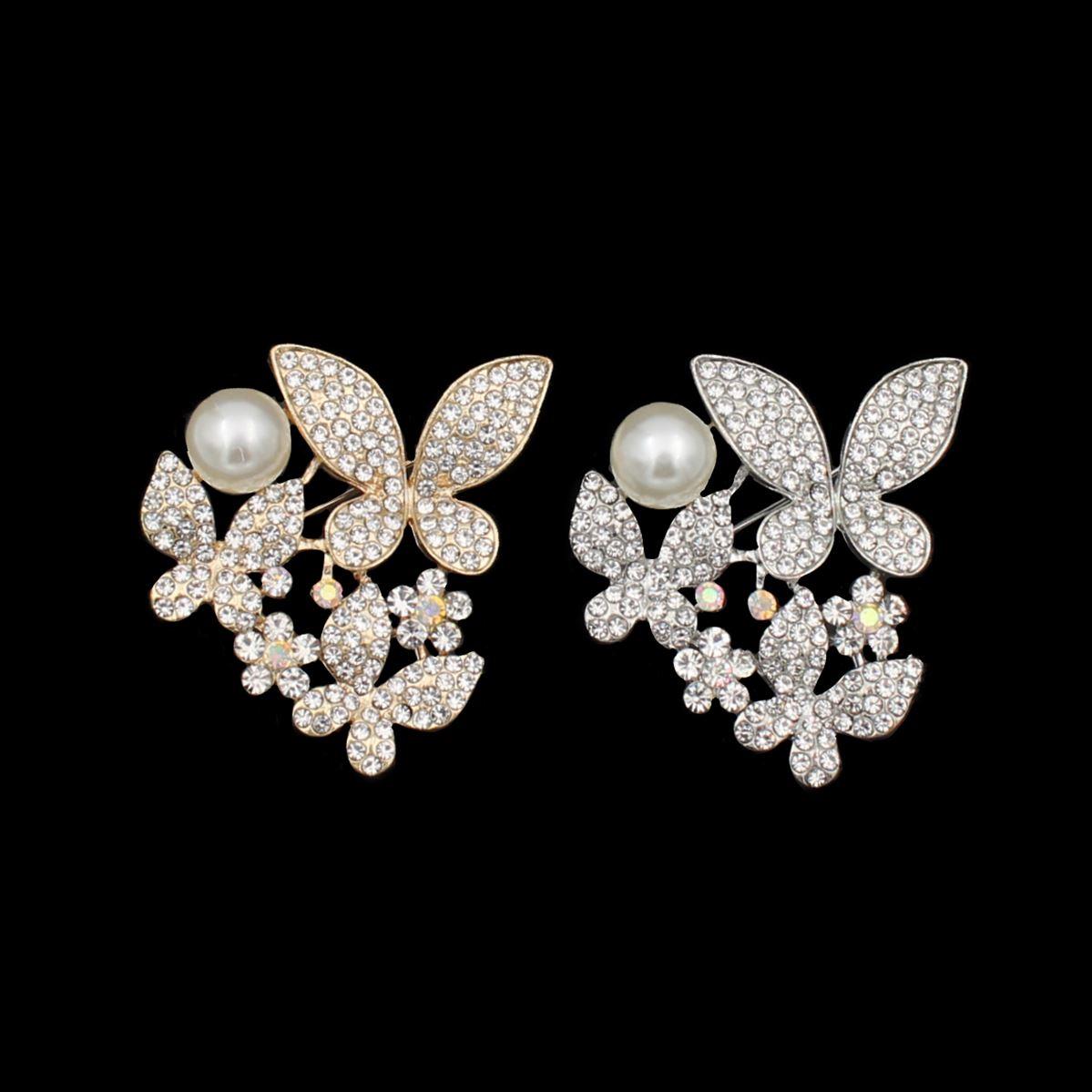 Καρφίτσα "πεταλούδες με πέρλα και λευκές πέτρες" μήκος 4εκ. 70468
