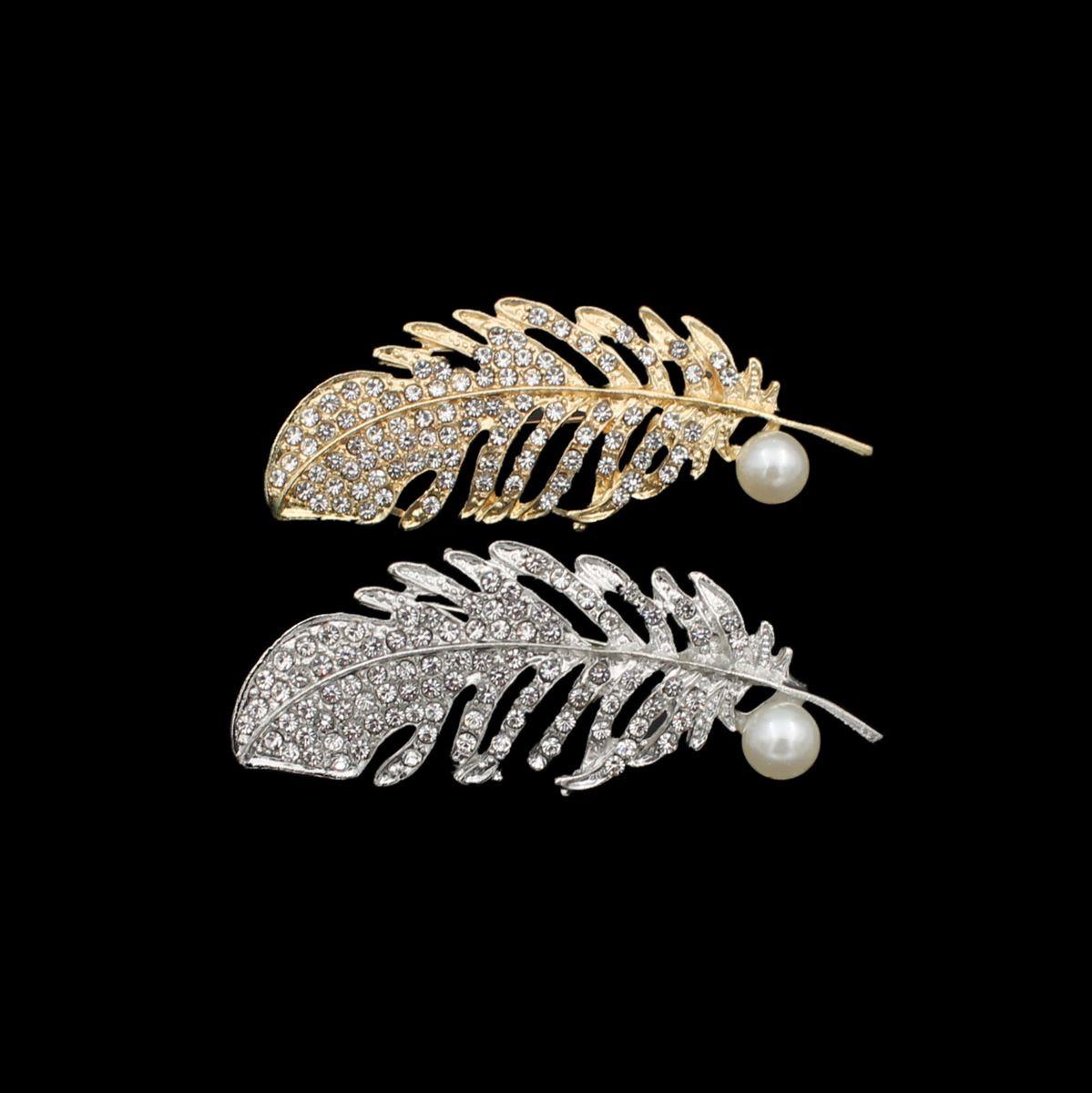 Καρφίτσα "φτερό με πέρλα και λευκές πέτρες" μήκος 6,4εκ. 70469