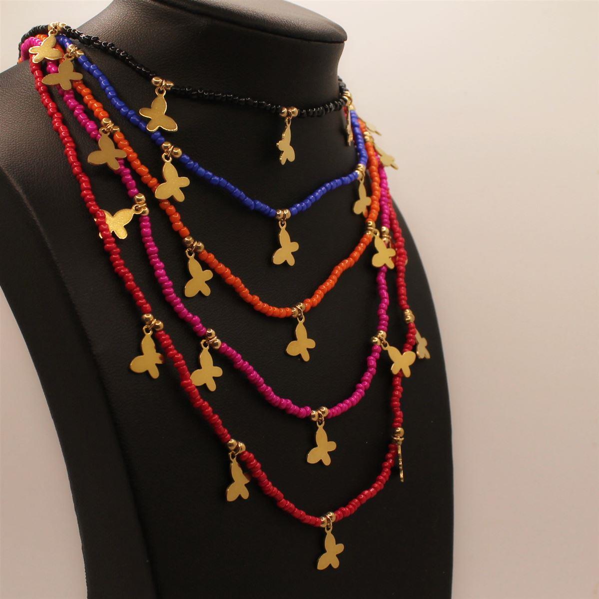 Κολιέ ατσάλι με χάντρες και πεταλούδες. Μήκος 40+εκ. 54680