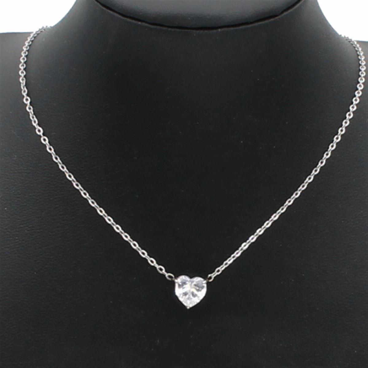 Ατσάλινο κολιέ "Καρδία με λευκή πέτρα 0,9εκ." μήκος 44εκ.+προέκταση 70073
