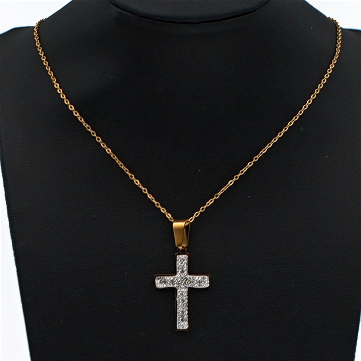 Ατσάλινο κολιέ "Σταυρός με λευκές πέτρες ύψος 2,5εκ." μήκος 40εκ.+προέκταση 70084