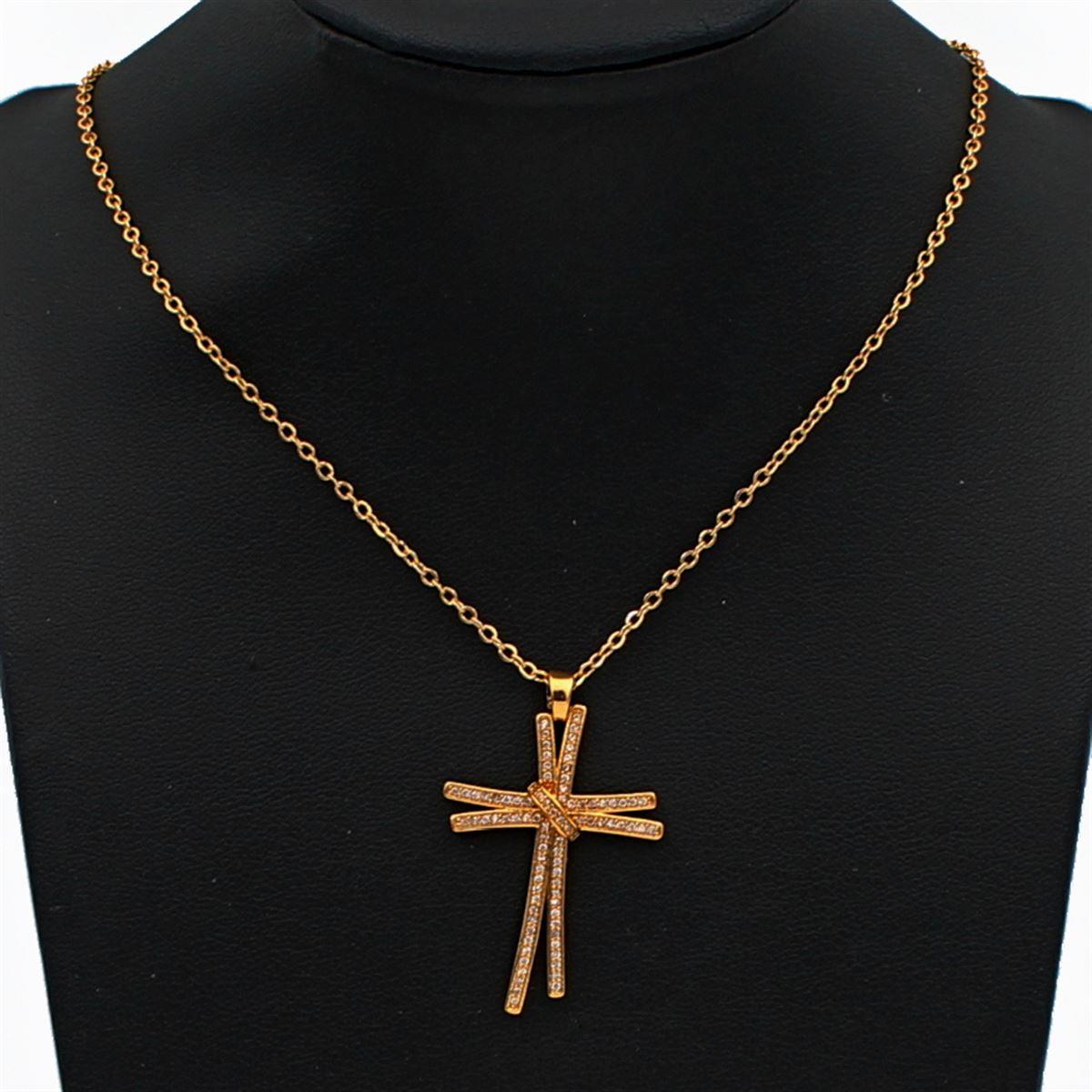 Ατσάλινο κολιέ "Σταυρός με λευκές πέτρες ύψος 3,3εκ." μήκος 40εκ.+προέκταση 70085