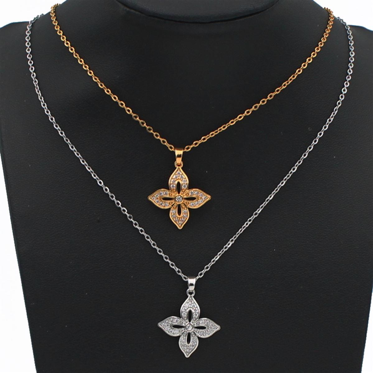 Ατσάλινο κολιέ "Τετράφυλλο τριφύλι με λευκές πέτρες ύψος 2εκ." μήκος 40εκ.+προέκταση 70086