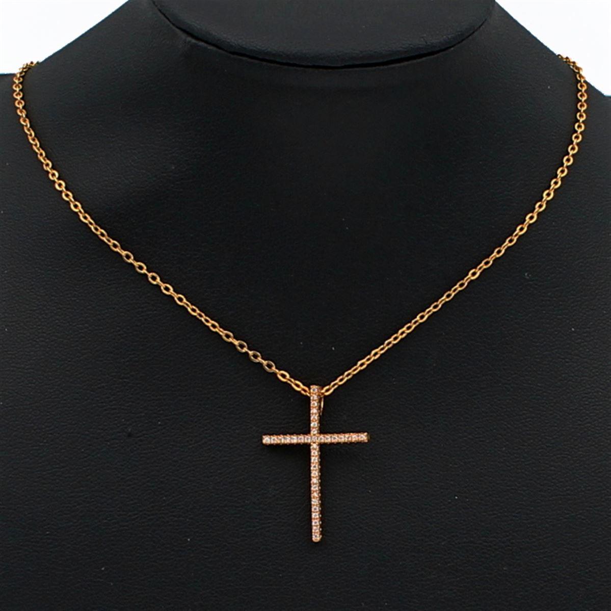 Ατσάλινο κολιέ "Σταυρός με λευκές πέτρες ύψος 2,7εκ." μήκος 40εκ.+προέκταση 70087