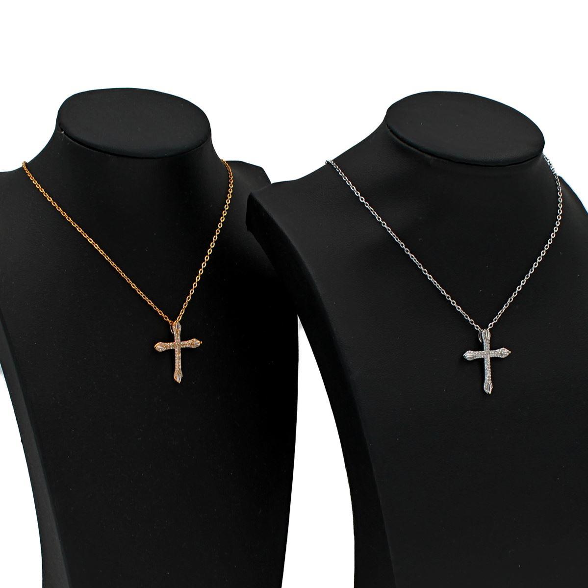 Ατσάλινο κολιέ "Σταυρός με λευκές πέτρες ύψος 2,5εκ." μήκος 40εκ.+προέκταση 70091