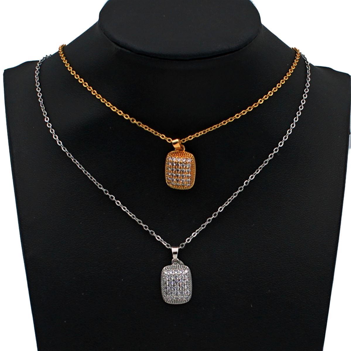 Ατσάλινο κολιέ "Τετράγωνο με λευκές πέτρες ύψος 1,5εκ." μήκος 40εκ.+προέκταση 70092