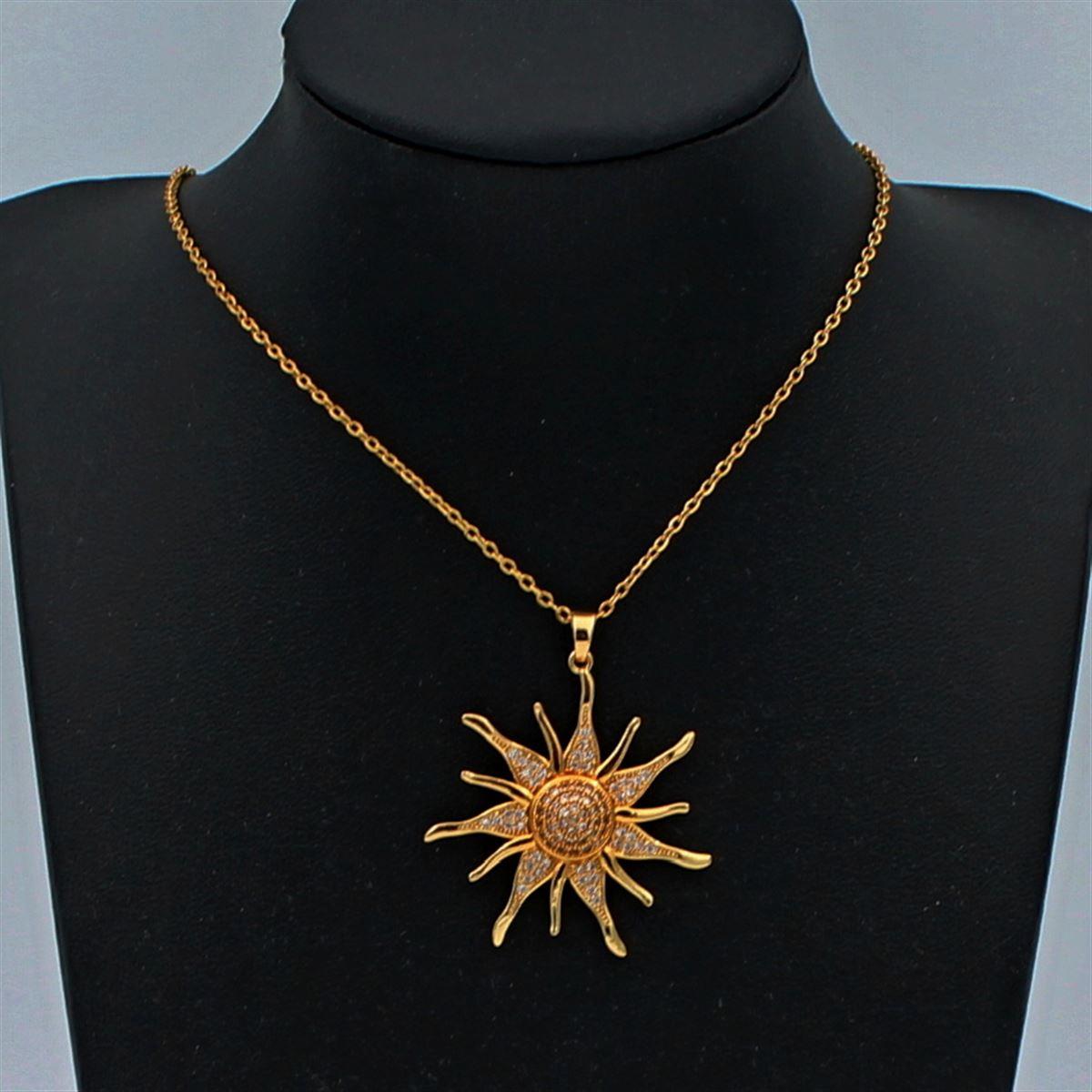 Ατσάλινο κολιέ "Ήλιος με λευκές πέτρες ύψος 3,5εκ." μήκος 40εκ.+προέκταση 70093