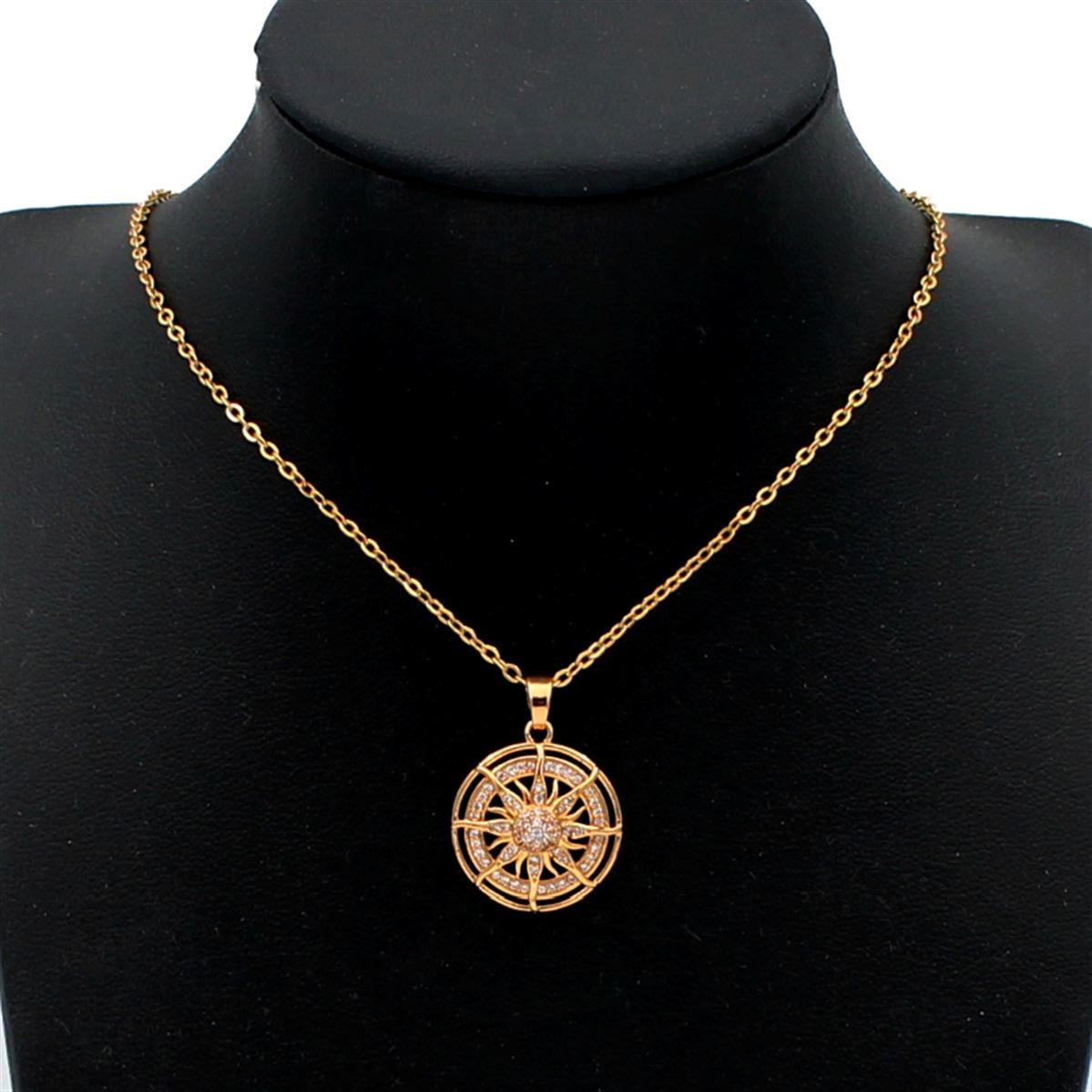 Ατσάλινο κολιέ "Δίσκος με λευκές πέτρες διάμετρος 1,8εκ." μήκος 40εκ.+προέκταση 70094