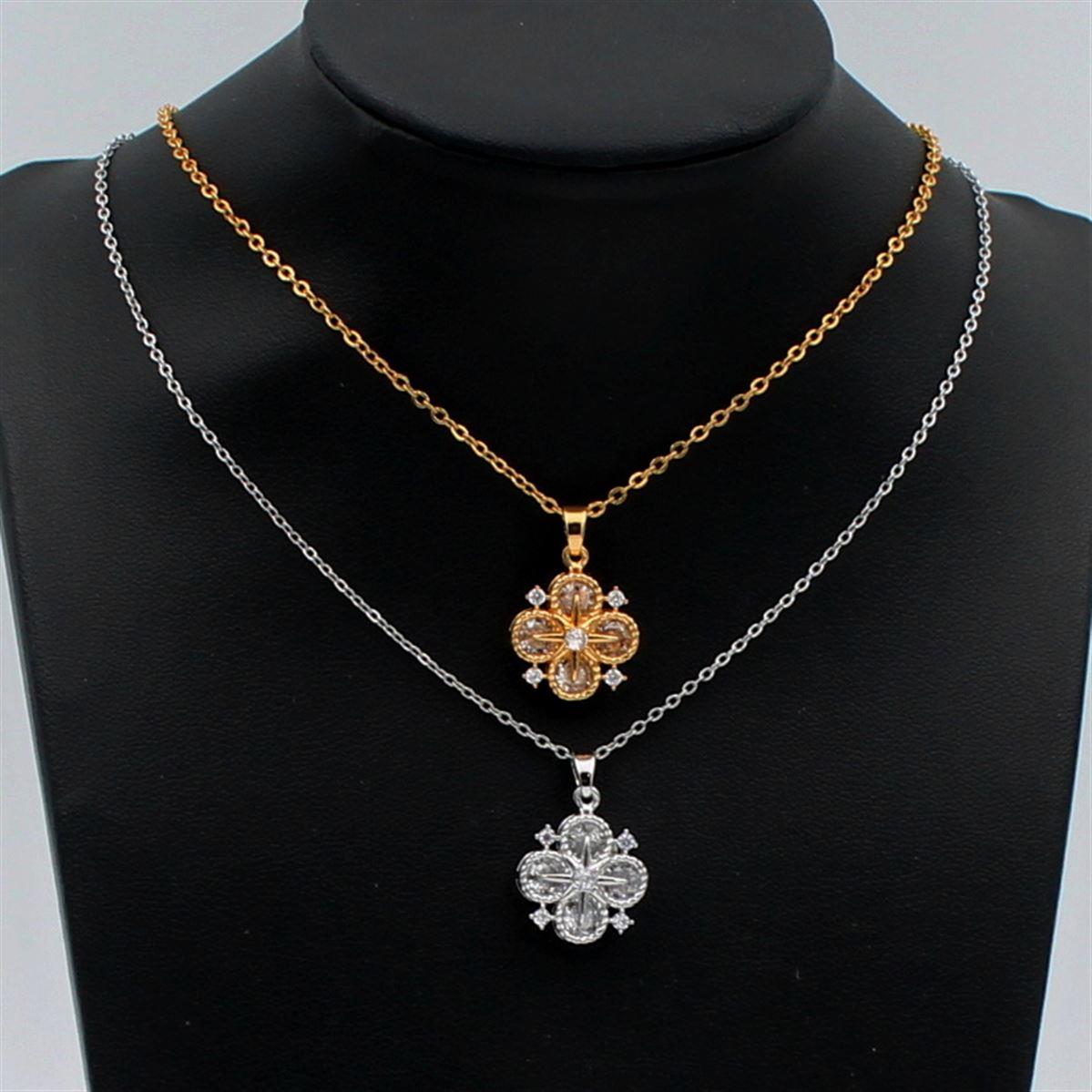 Ατσάλινο κολιέ "Τετράγωνο τριφύλλι με λευκές πέτρες ύψος 1,5εκ." μήκος 40εκ.+προέκταση 70096