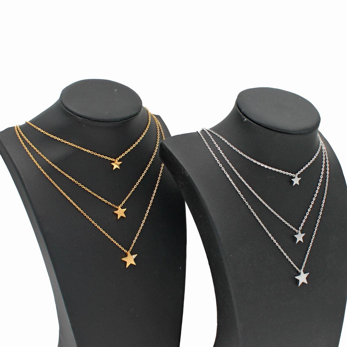 Ατσάλινο κολιέ "τριπλό με αστέρια και λευκή πέτρα" μήκος 50εκ.+προέκταση 70133