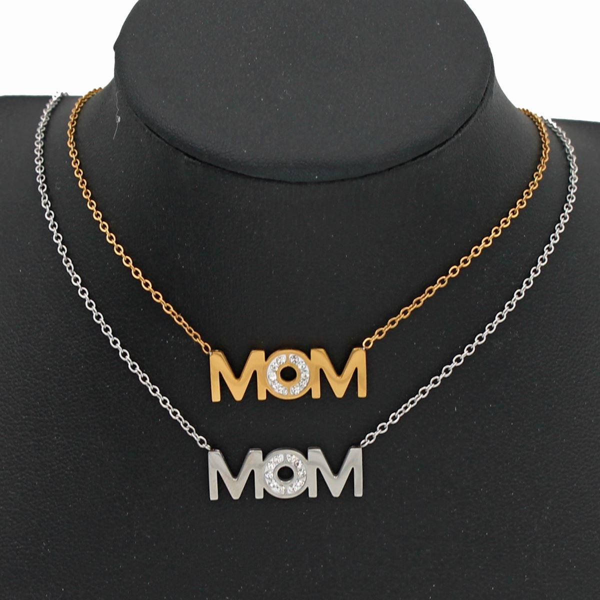 Ατσάλινο κολιέ "MOM με λευκές πέτρες" μήκος 45εκ.+προέκταση 70138