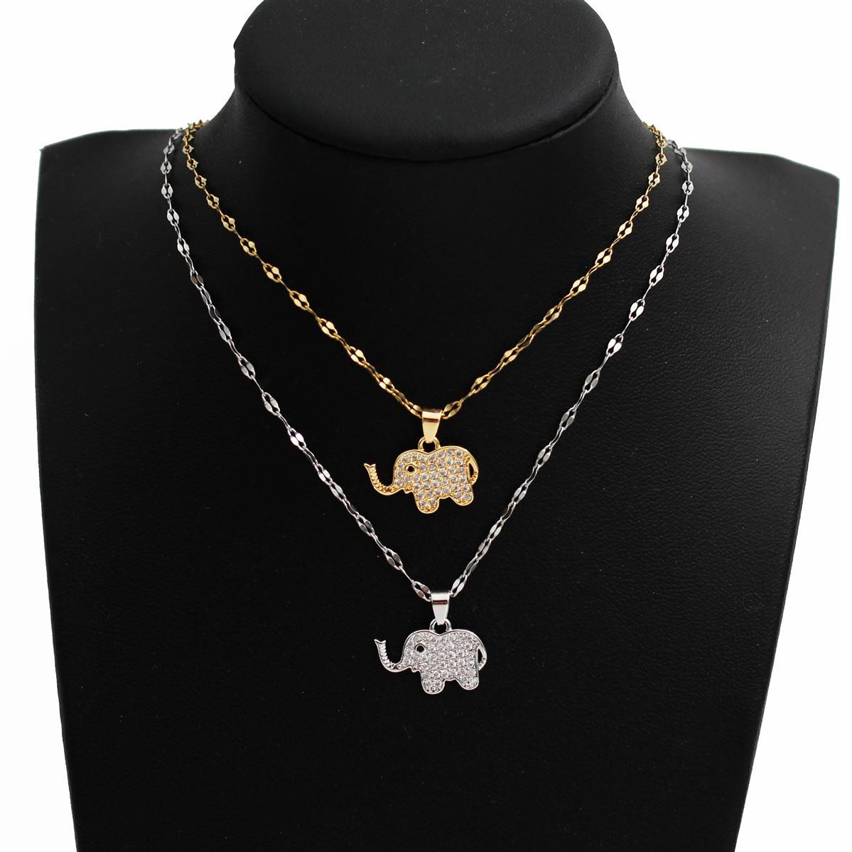 Ατσάλινο Κολιέ ελέφαντας με λευκές πέτρες μήκος 45εκ.+προέκταση 70142