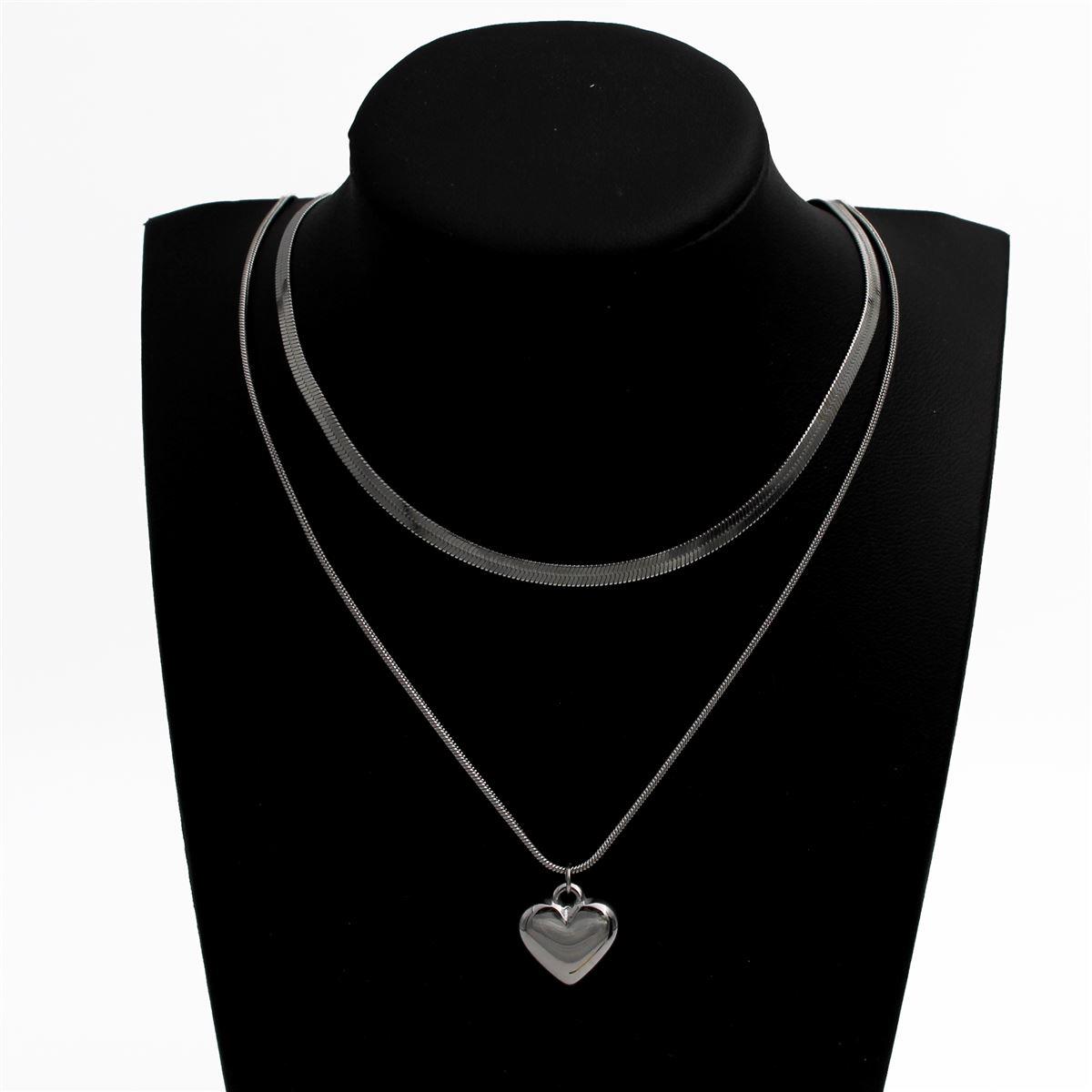 Ατσάλινο κολιέ "διπλό τύπου φίδι με καρδιά " μήκος 46εκ.+προέκταση 70192