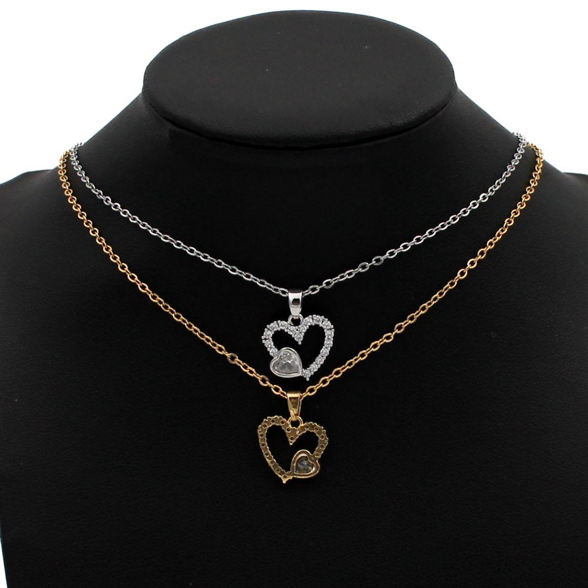 Ατσάλινο κολιέ "καρδιά με λευκές πέτρες" μήκος 42εκ.+προέκταση 70351