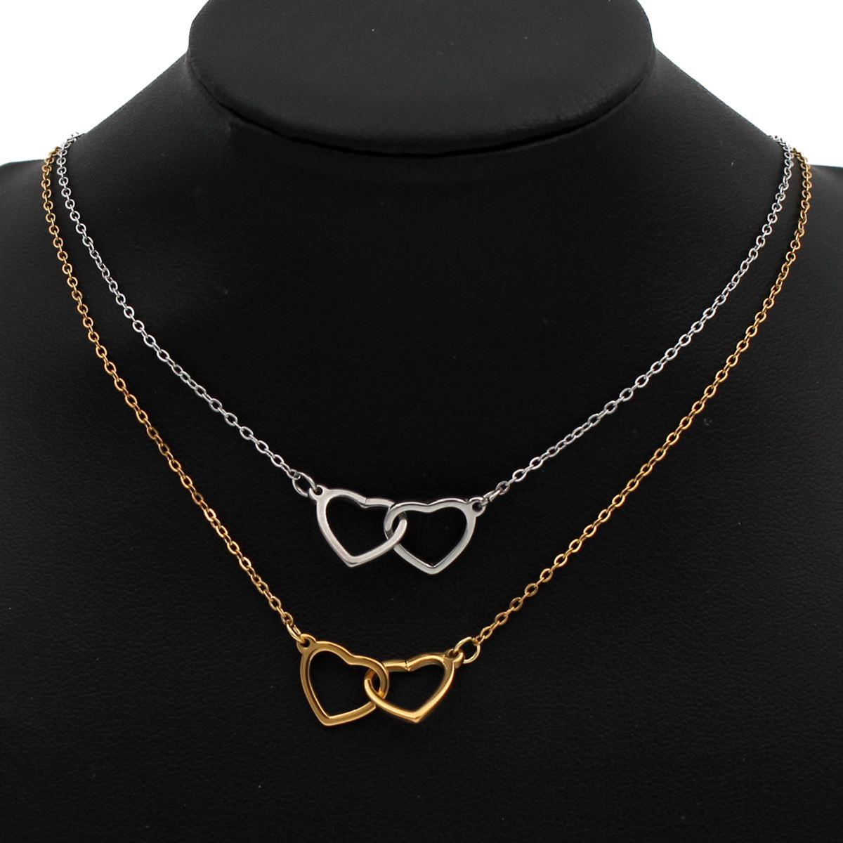 Ατσάλινο κολιέ "δύο καρδιές" μήκος 40εκ.+προέκταση 70357