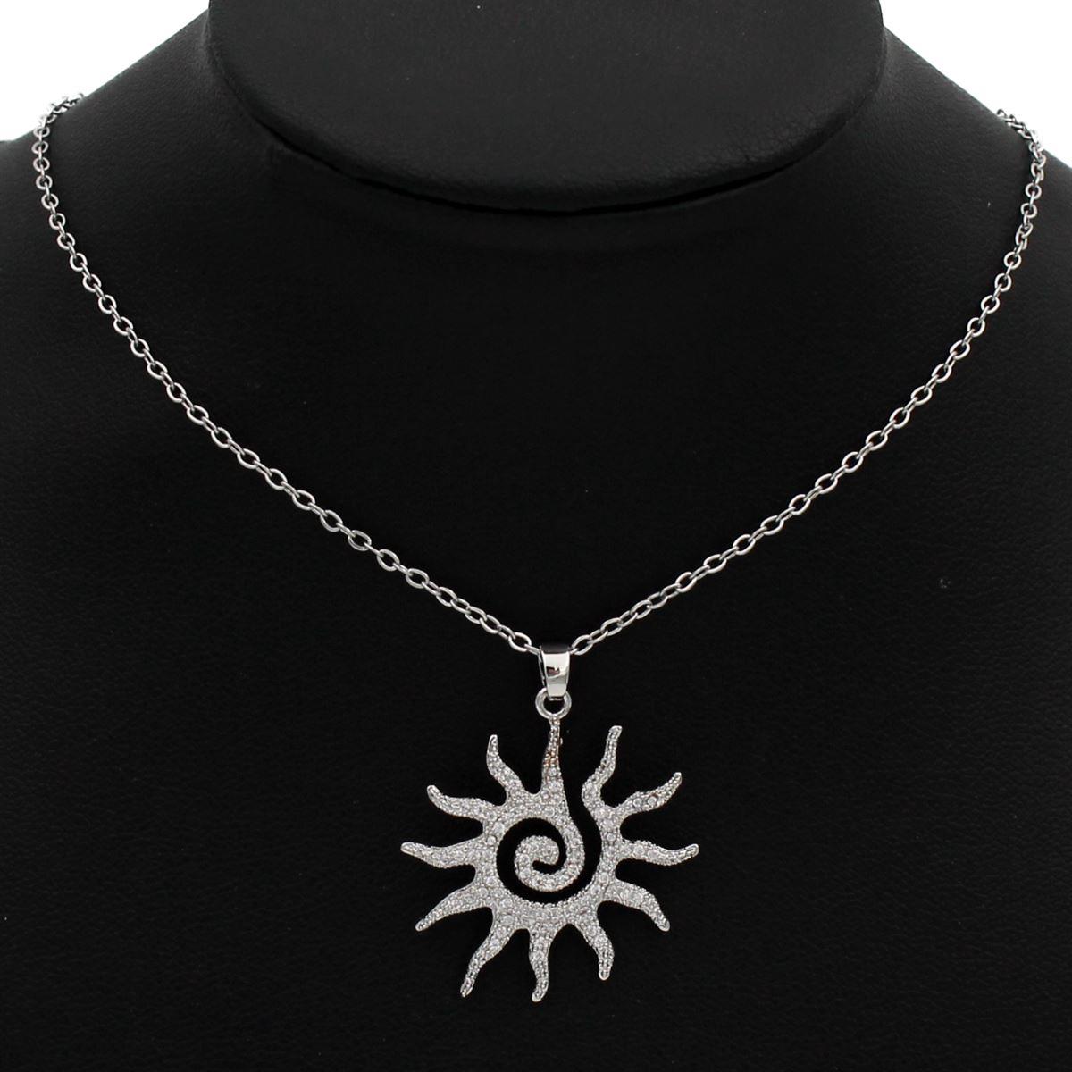 Ατσάλινο κολιέ "ήλιος με λευκές πέτρες" μήκος 40εκ.+προέκταση 70362