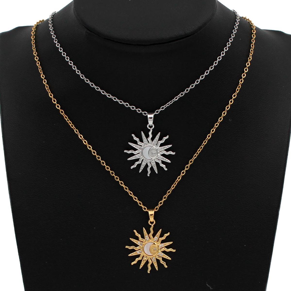 Ατσάλινο κολιέ "ήλιος με φεγγάρι φίλντισι" μήκος 40εκ.+προέκταση 70364