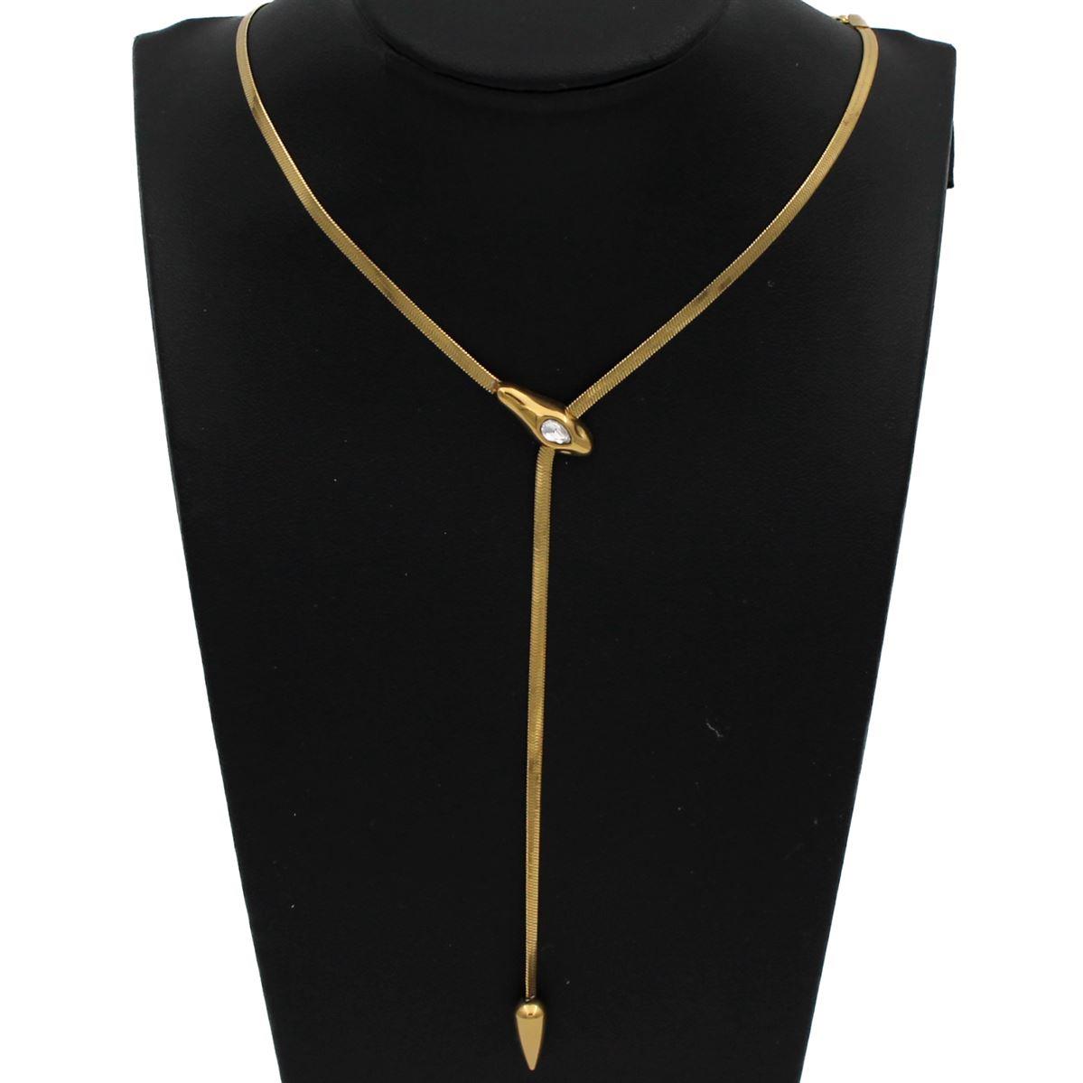Ατσάλινο κολιέ "φίδι με λευκή πέτρα τύπου γραβάτα" μήκος 45εκ.+προέκταση 70366