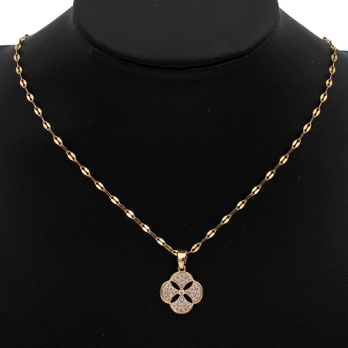 Ατσάλινο κολιέ "τετράφυλλο τριφύλλι με λευκές πέτρες" μήκος 38εκ.+προέκταση 70370