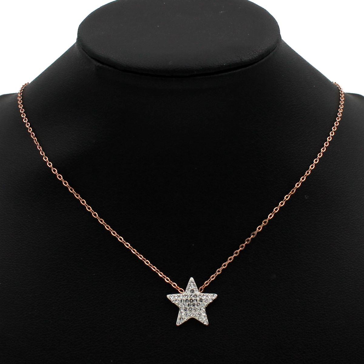 Ατσάλινο κολιέ "αστέρι με λευκές πέτρες" μήκος 40εκ.+προέκταση 70374