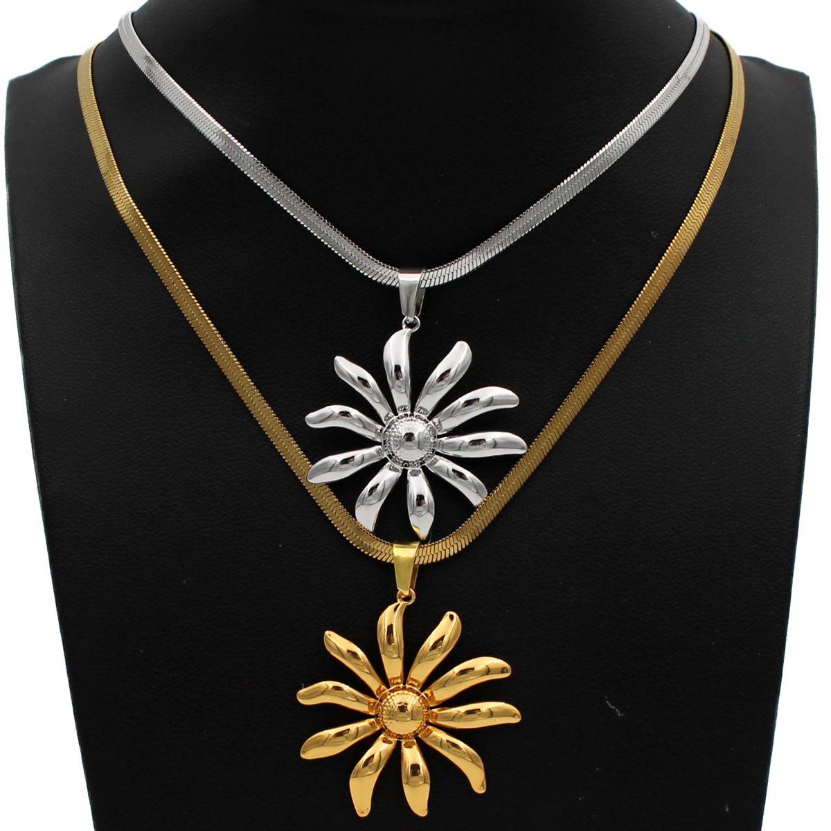 Ατσάλινο κολιέ "αλυσίδα τύπου φίδιι με λουλούδι" μήκος 40εκ.+προέκταση 70389