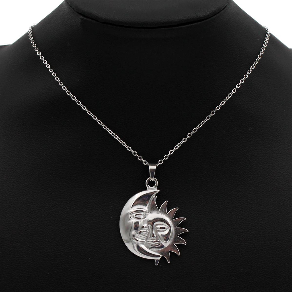 Ατσάλινο κολιέ "ήλιος με φεγγάρι" μήκος 40εκ.+προέκταση 70392