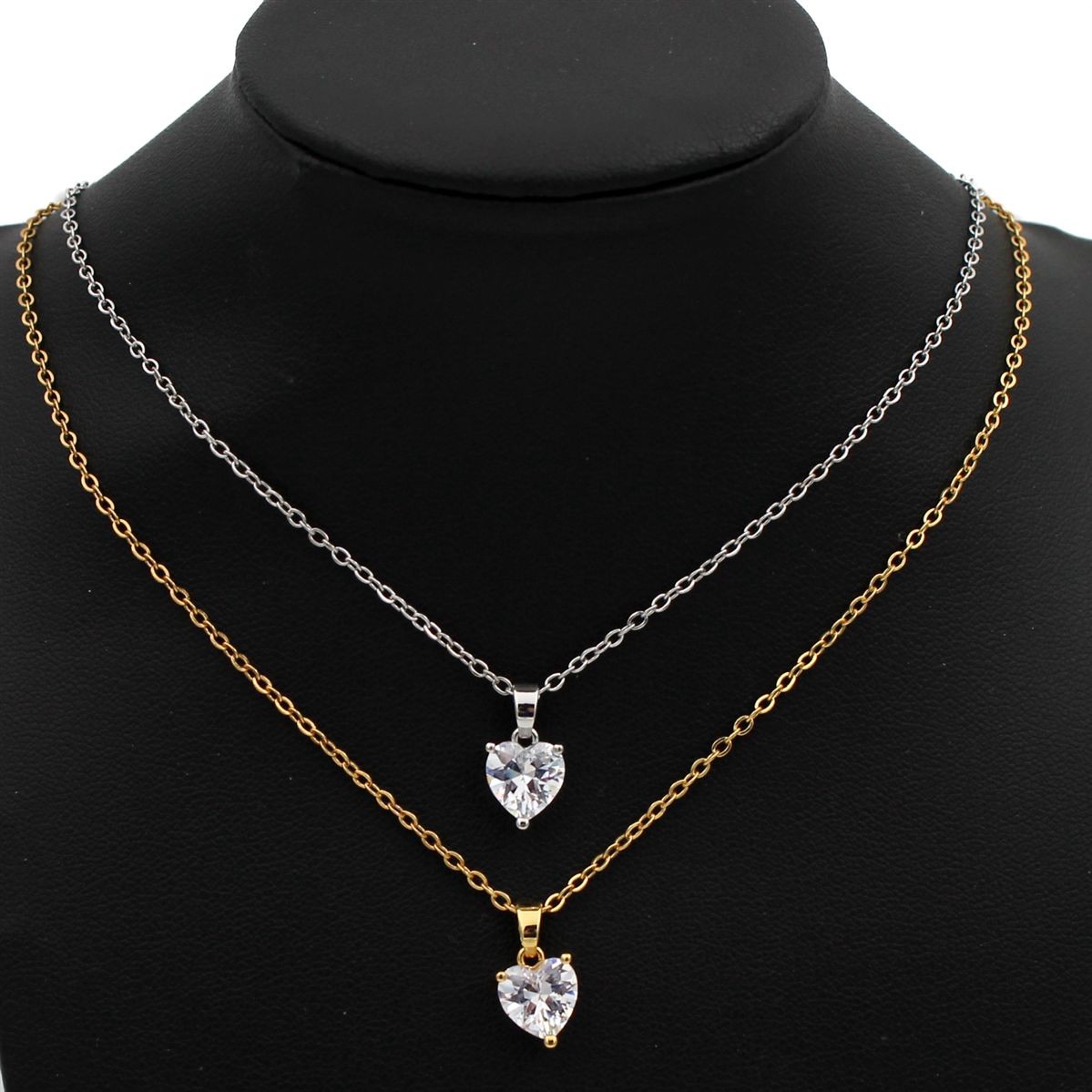 Ατσάλινο κολιέ "καρδιά με λευκή πέτρα" μήκος 40εκ.+προέκταση 70408