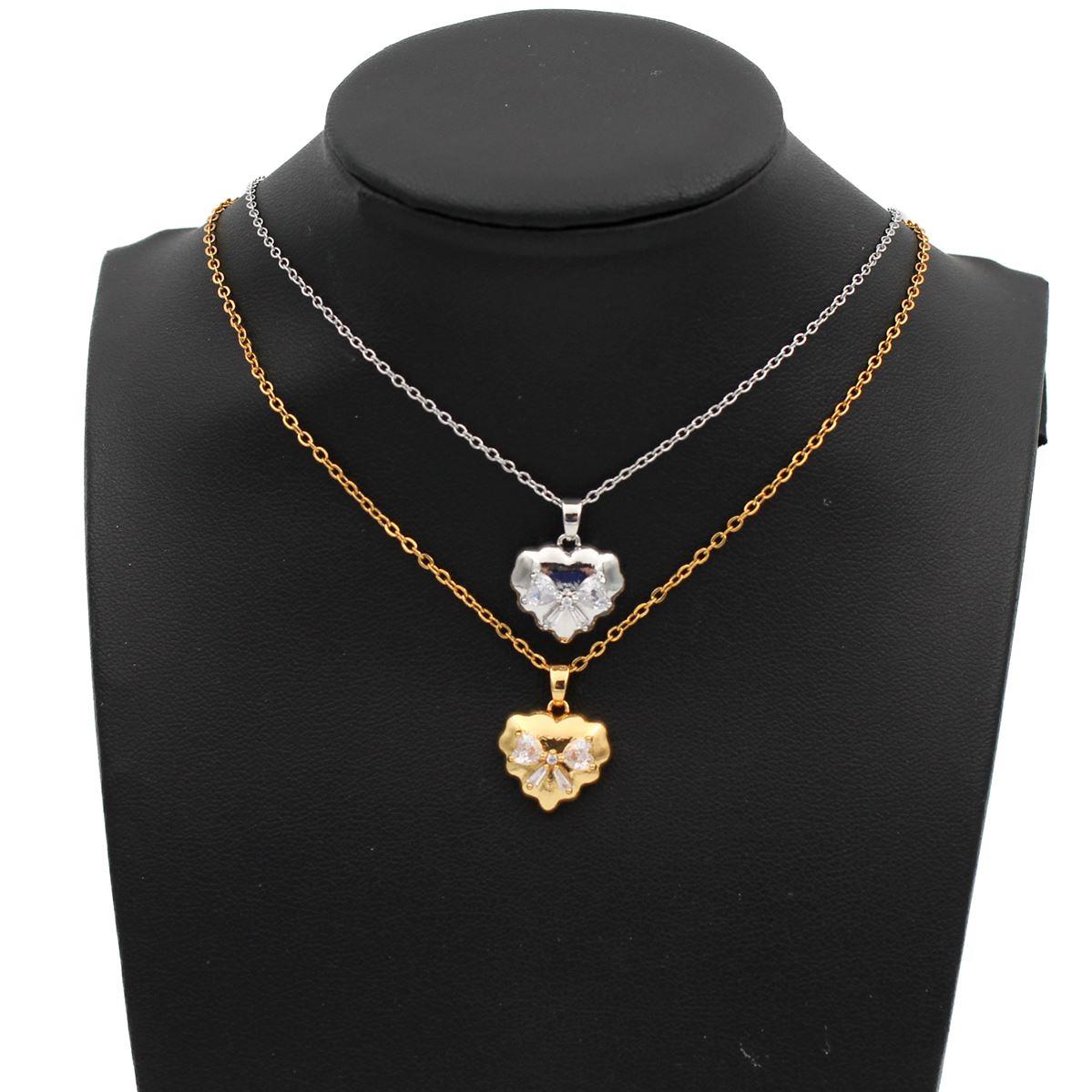Ατσάλινο κολιέ "καρδιά φιόγκο με λευκές πέτρες" μήκος 40εκ.+προέκταση 70412