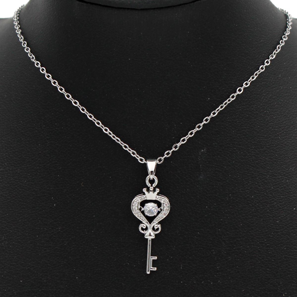 Ατσάλινο κολιέ "κλειδί με λευκές πέτρες" μήκος 40εκ.+προέκταση 70438