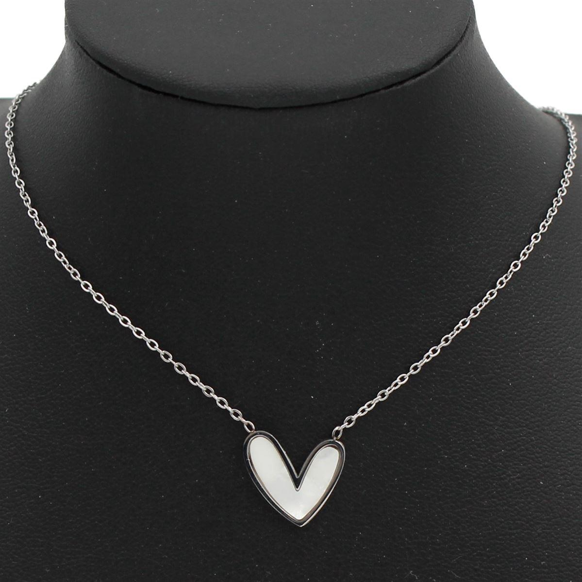 Ατσάλινο κολιέ "καρδιά με φίλντισι" μήκος 44εκ.+προέκταση 70432