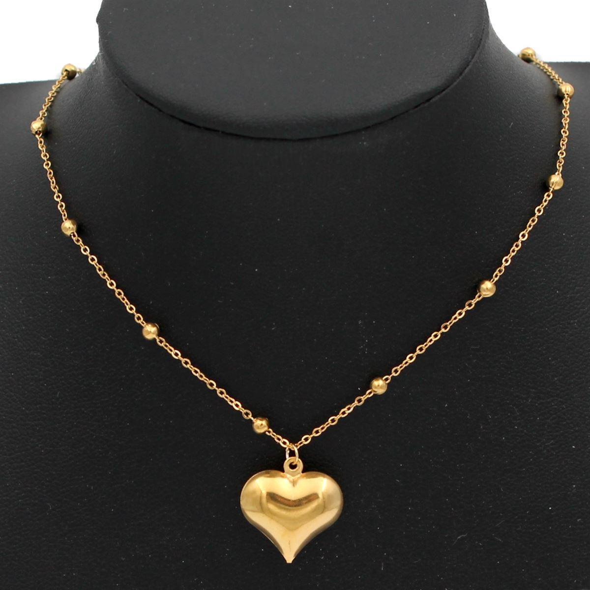 Ατσάλινο κολιέ "αλυσίδα με μπίλιες και καρδιά" μήκος 40εκ.+προέκταση 70428