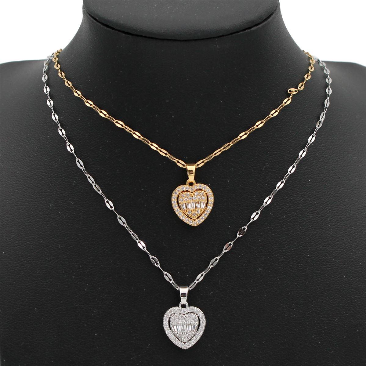 Ατσάλινο κολιέ "καρδιά με λευκές πέτρες" μήκος 38εκ.+προέκταση 70423
