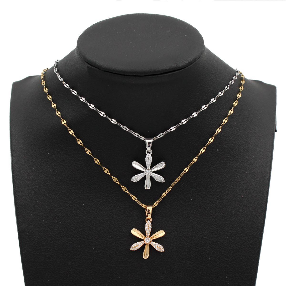 Ατσάλινο κολιέ "λουλούδι με λευκές πέτρες" μήκος 40εκ.+προέκταση 70421