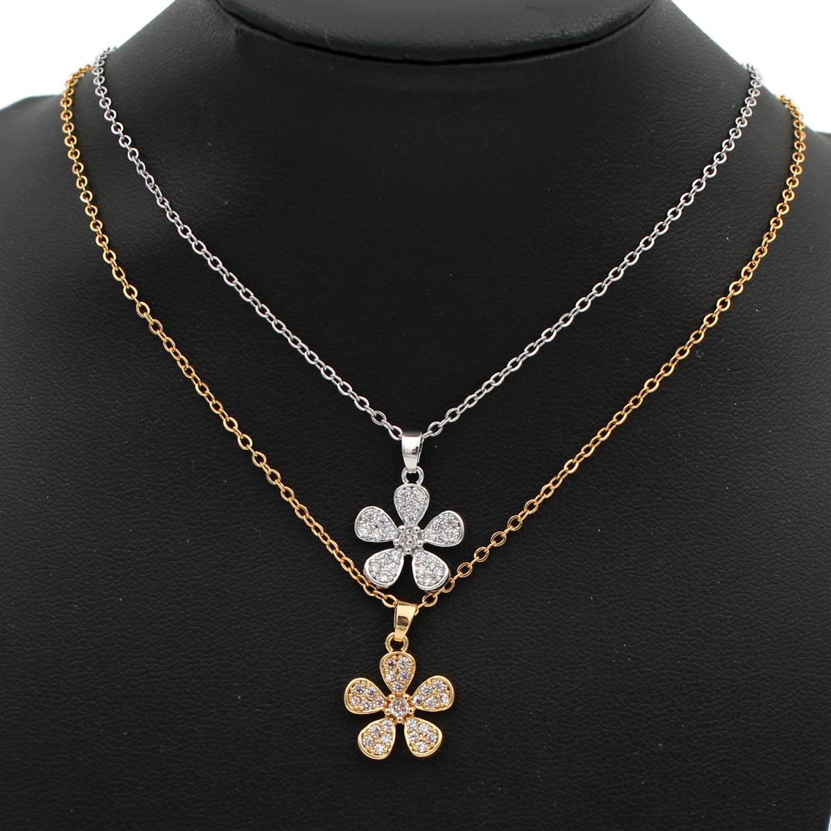 Ατσάλινο κολιέ "λουλούδι με λευκές πέτρες" μήκος 40εκ.+προέκταση 70420
