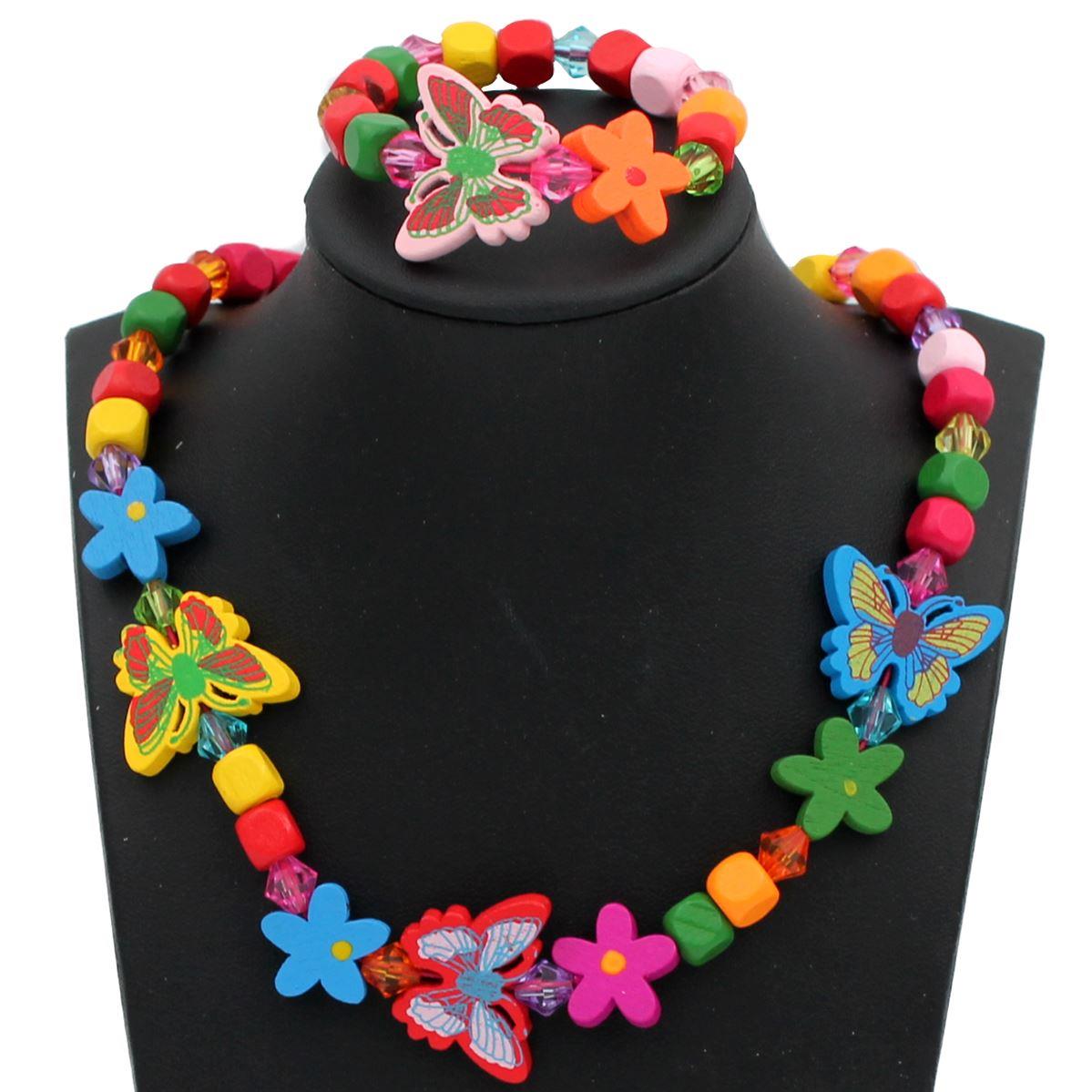 Κολιέ ξύλινο"λουλούδια και πεταλούδες" ελαστικό one size 70544
