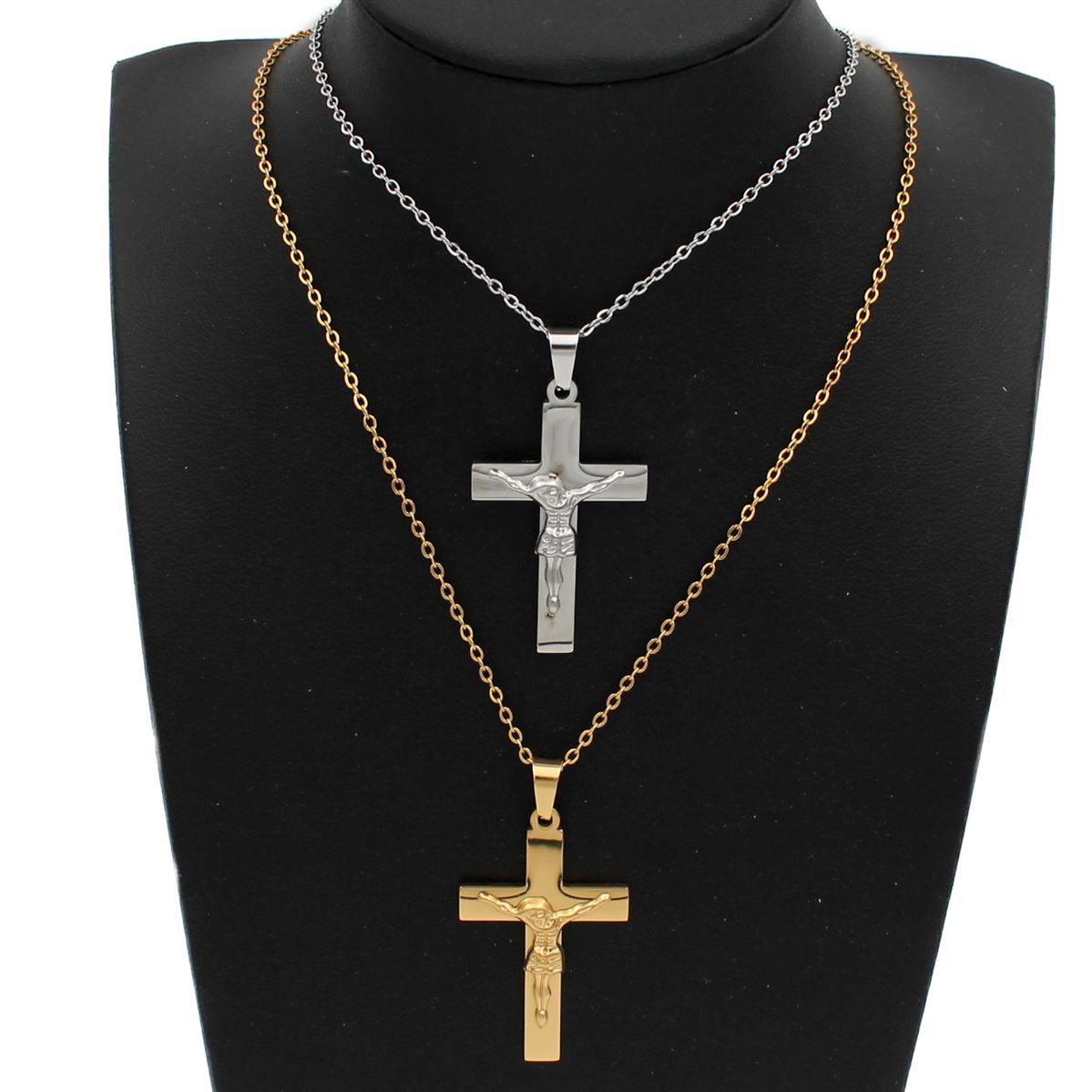 Ατσάλινο κολιέ "σταυρός με τον Εσταυρωμένο" μήκος 40εκ.+ προέκταση 70583