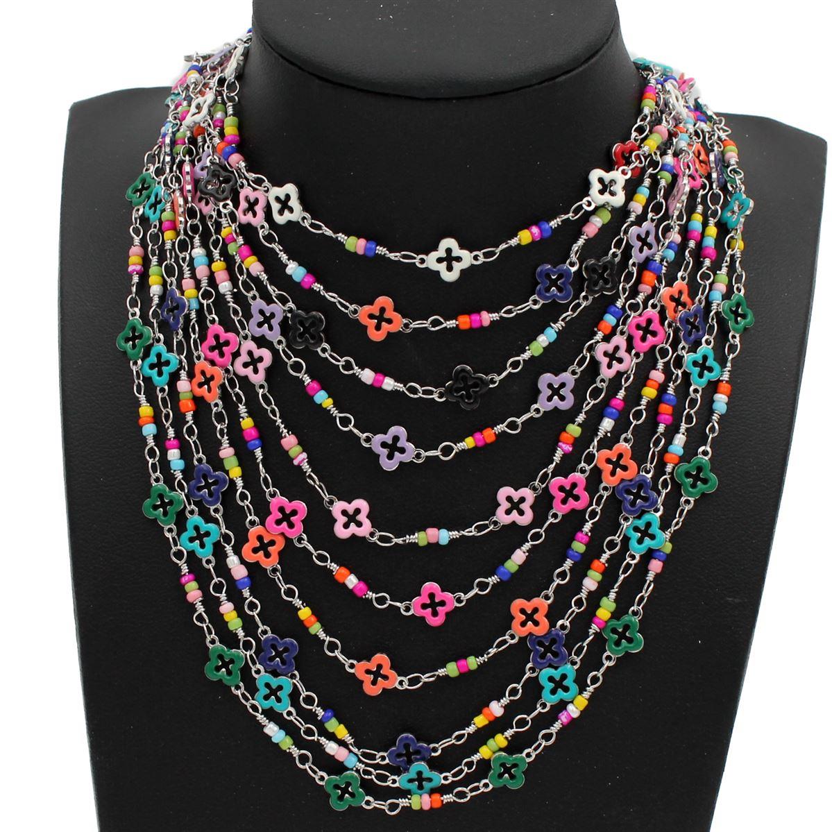 Ατσάλινο κολιέ "με χάντρες και σταυρούς" μήκος 40εκ.+προέκταση 70607