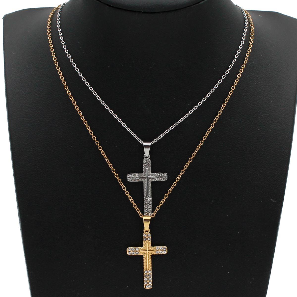 Ατσάλινο κολιέ "σταυρός με λευκές πέτρες" μήκος 40εκ.+προέκταση 70686