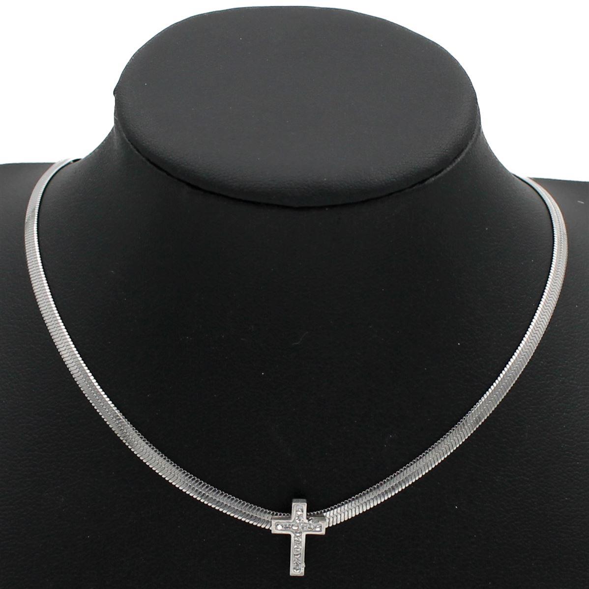 Ατσάλινο κολιέ "αλυσίδα τύπου φίδι σταυρός με λευκές πέτρες" μήκος 38εκ.+προέκταση 70687