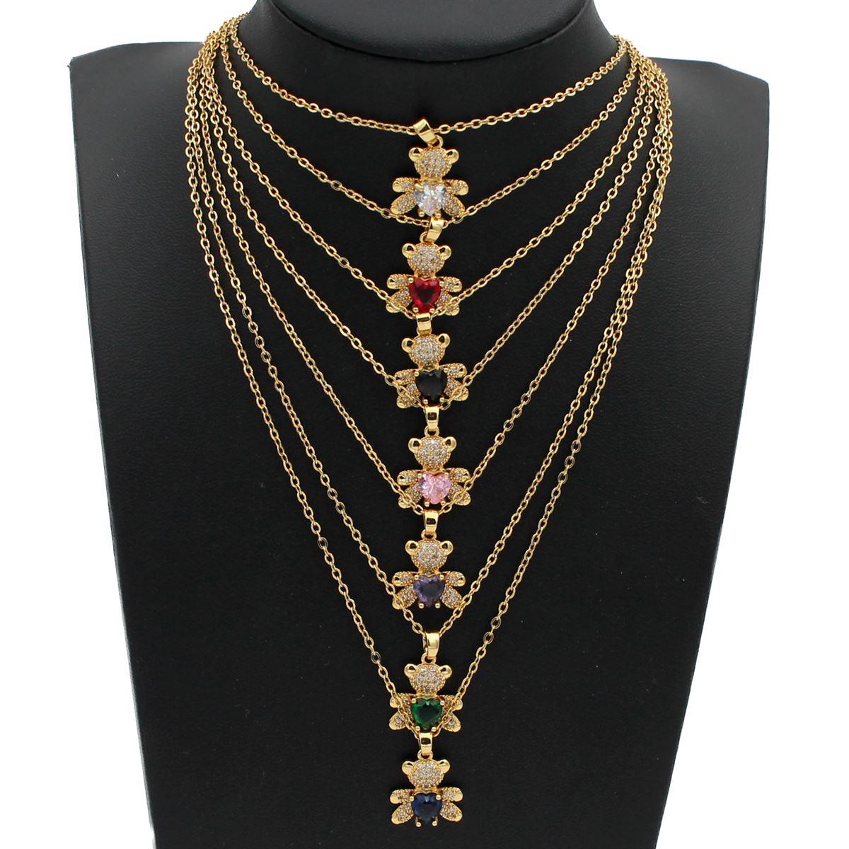 Ατσάλινο κολιέ "αρκουδάκι με καρδιά και πέτρες" μήκος 40εκ.+προέκταση 70689