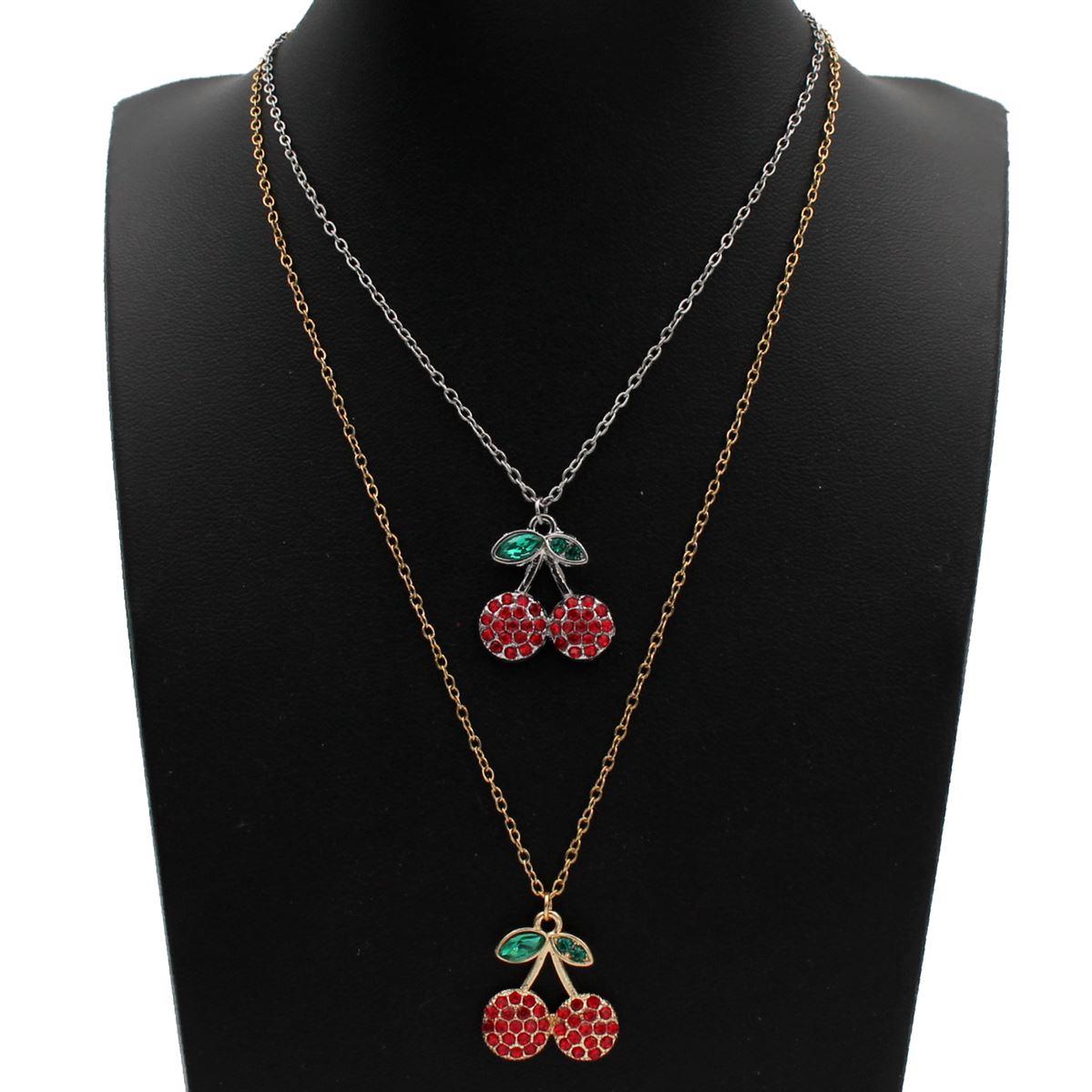Ατσάλινο κολιέ "κεράσι με λευλές πέτρες" μήκος 40εκ.+προέκταση 70808