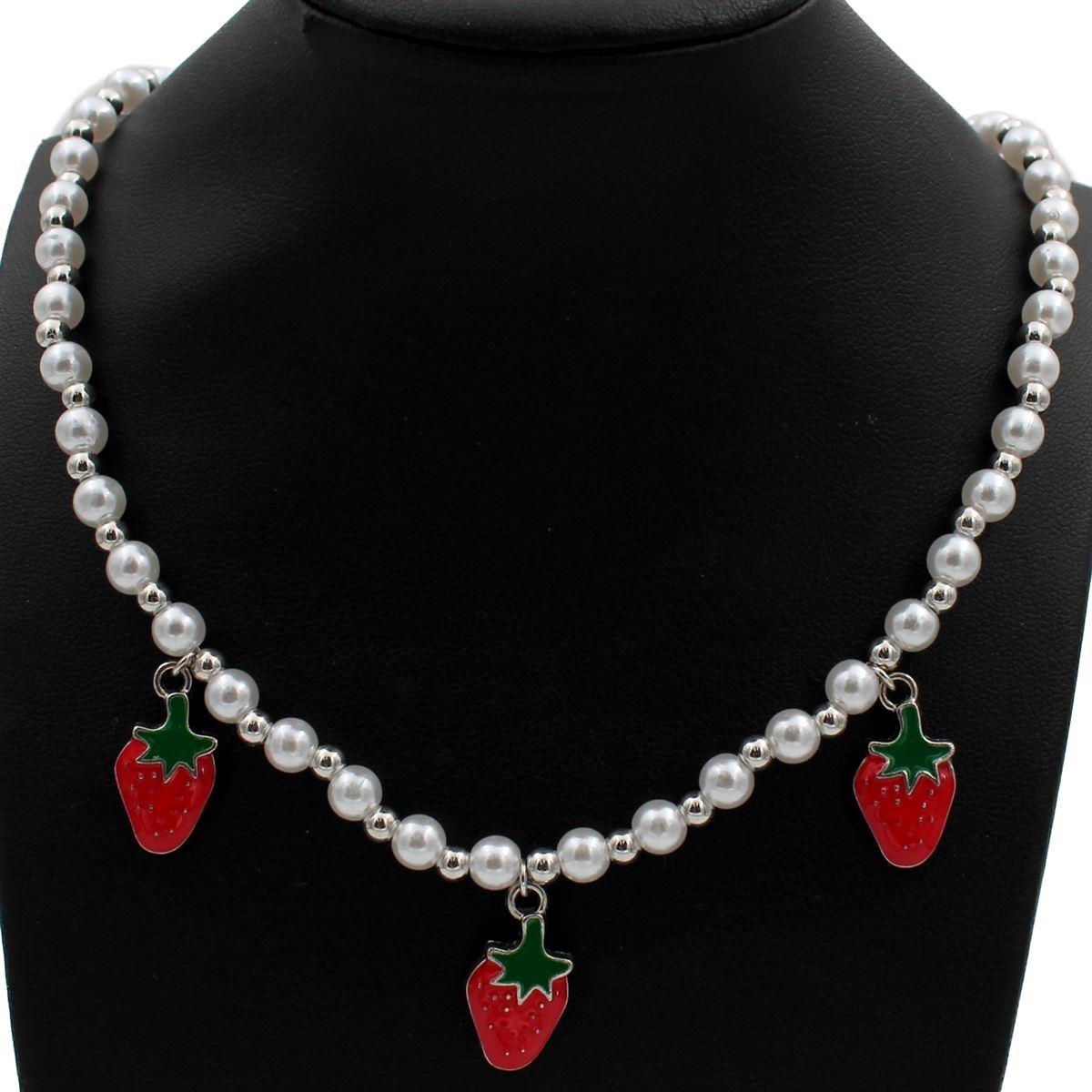 Ατσάλινο κολιέ "πέρλα με φράουλες" μήκος 40εκ.+προέκταση 70818