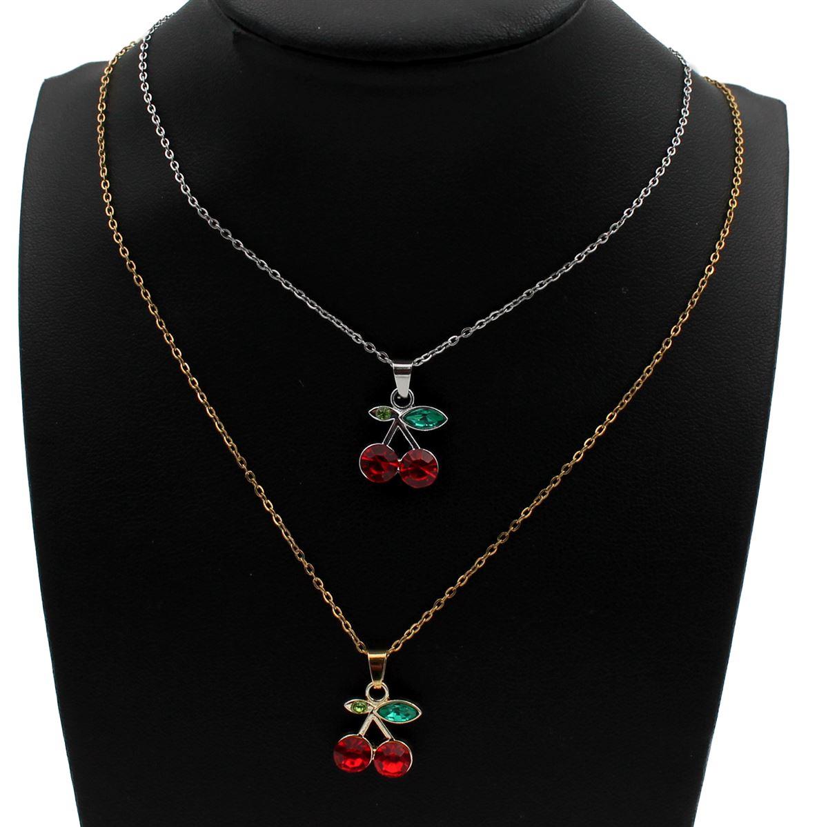Ατσάλινο κολιέ "κεράσι με λευκές πέτρες" μήκος 39εκ.+προέκταση 70822