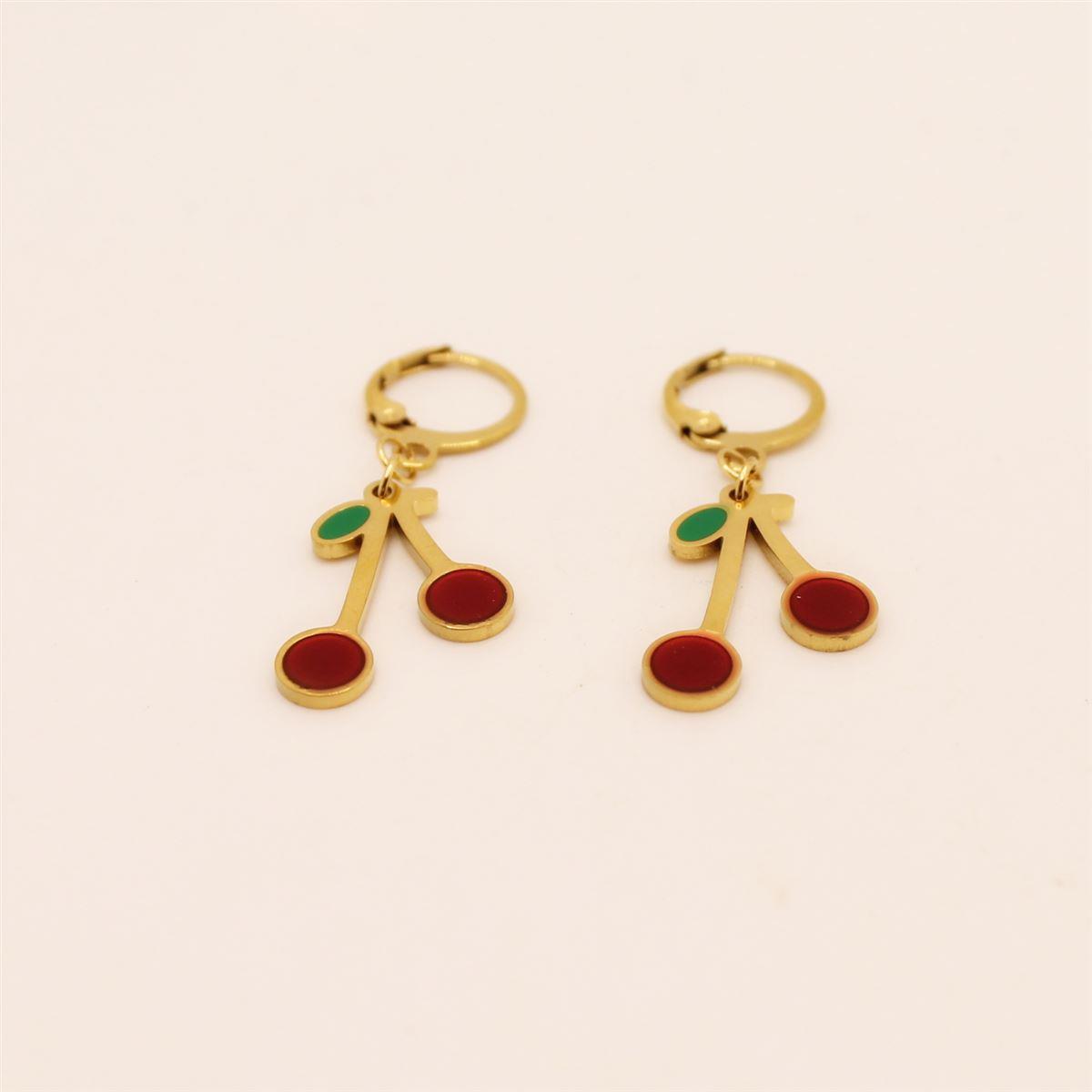 Σκουλαρίκια ατσάλι κρίκος με κεράσια. Μήκος 4εκ. 54101