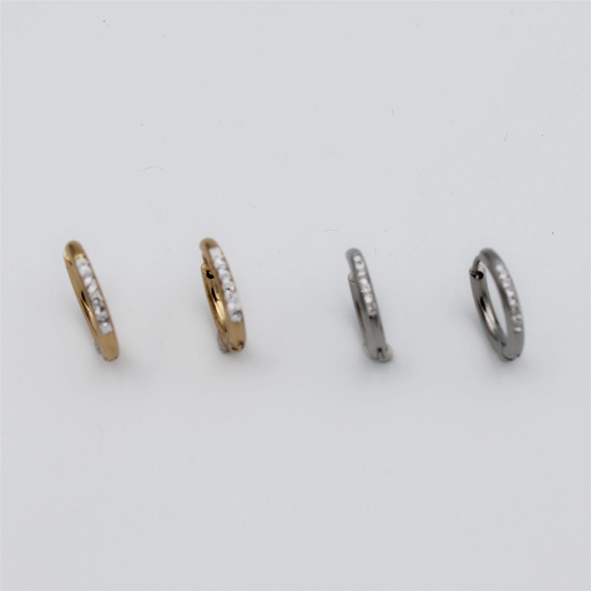 Σκουλαρίκια ατσάλι κρίκος με λευκές πέτρες, πάχος 0,25εκ. Διάμετρος 1,2εκ. 60208