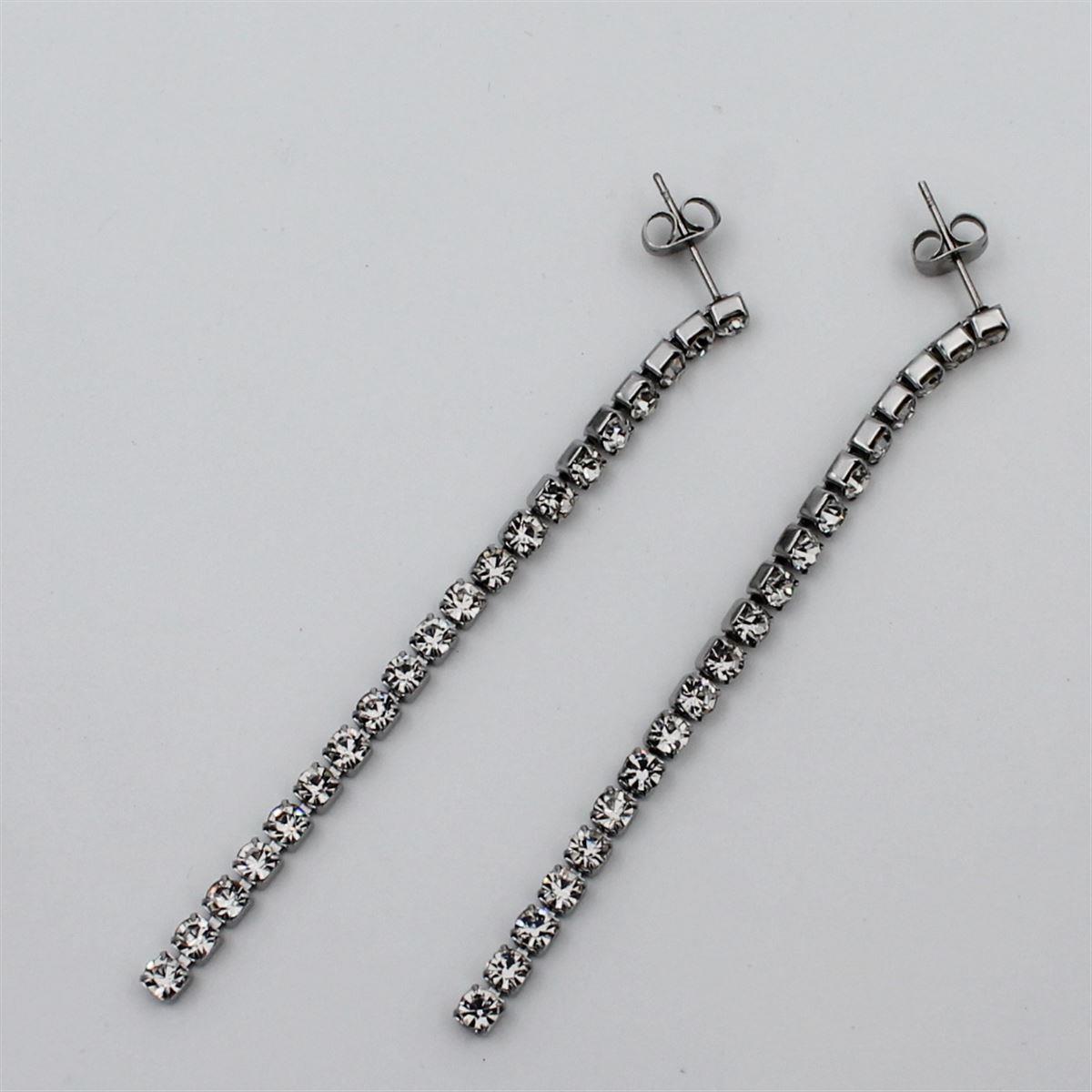 Ατσάλινα σκουλαρίκια "Σειρέ με λευκές πέτρες" μήκος 7εκ. πάχος 0,3εκ. 70032